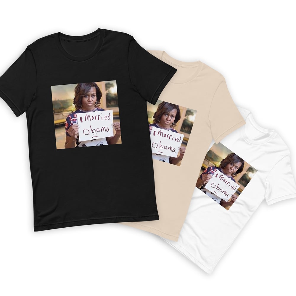 It's the "I Married Obama" Michelle Obama t-shirt you've all been waiting for, finally available for purchase here at shop dot postamerica dot tv!